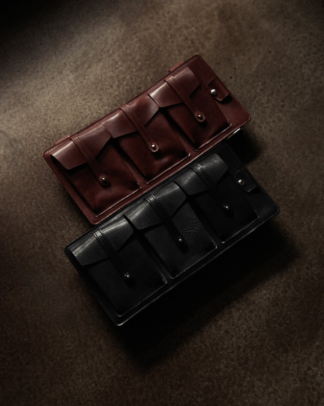 “Driver’s Bandolier”は金具以外がすべてレザーでできていて、車内の環境や経過した時間(≒距離)と連動して財布や革靴と同じように独自の変化をしていきます。