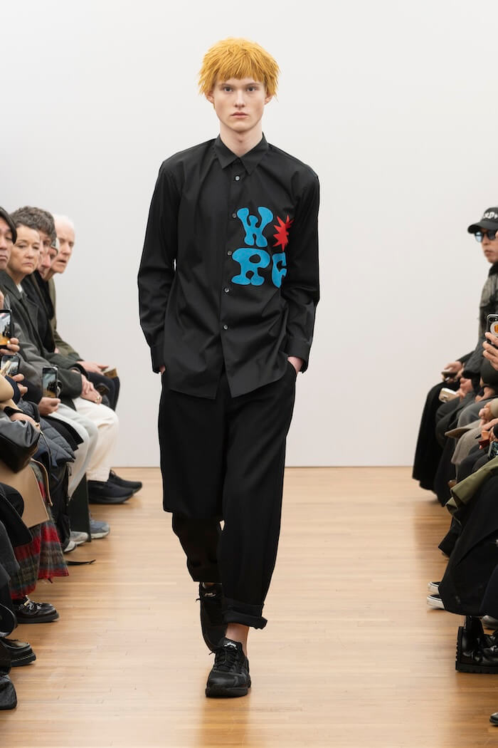 「BLACK」という明快な言葉をテーマに持ってきた〈コム デ ギャルソン・シャツ〉。今回のファッションウィークを通じて、「コム デ ギャルソン」社の各ブランドが意図的に使ったと思われる黒の色の意味についていろいろと考えさせられました。