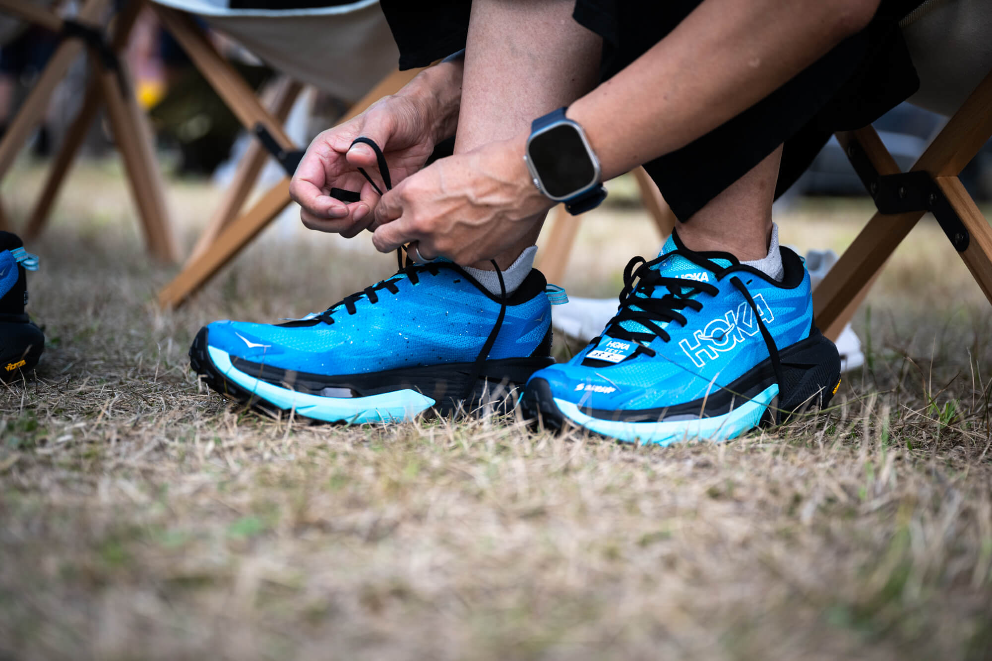 榎本:足元の話を。協賛がHOKAということで、3人ともHOKA。おれは「マファテ 5」をチョイス。