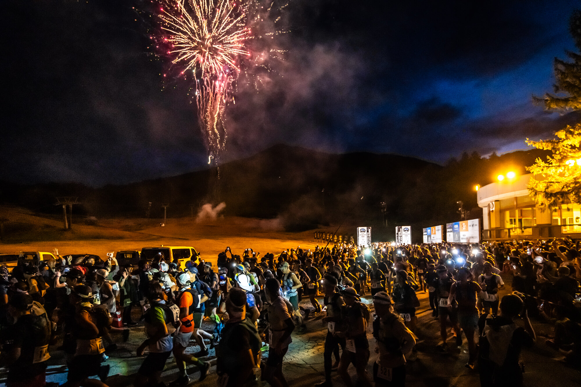 100マイルのスタートは花火が夜空を彩り、会場の熱気は最高潮に!