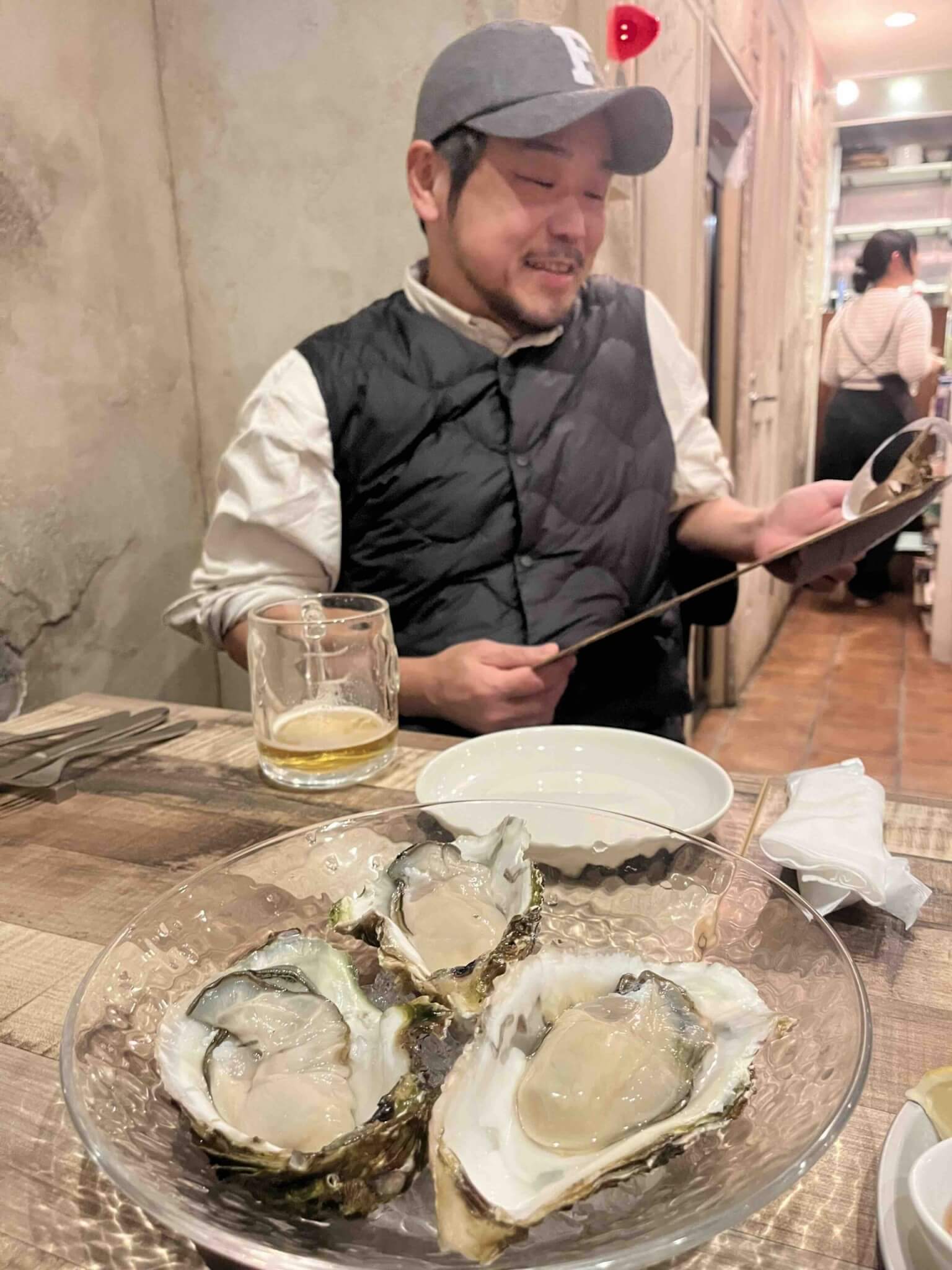 元同僚の桃ちゃんオススメのお店。生牡蠣に生ハム、何食べてもメチャクチャ美味しかったです。