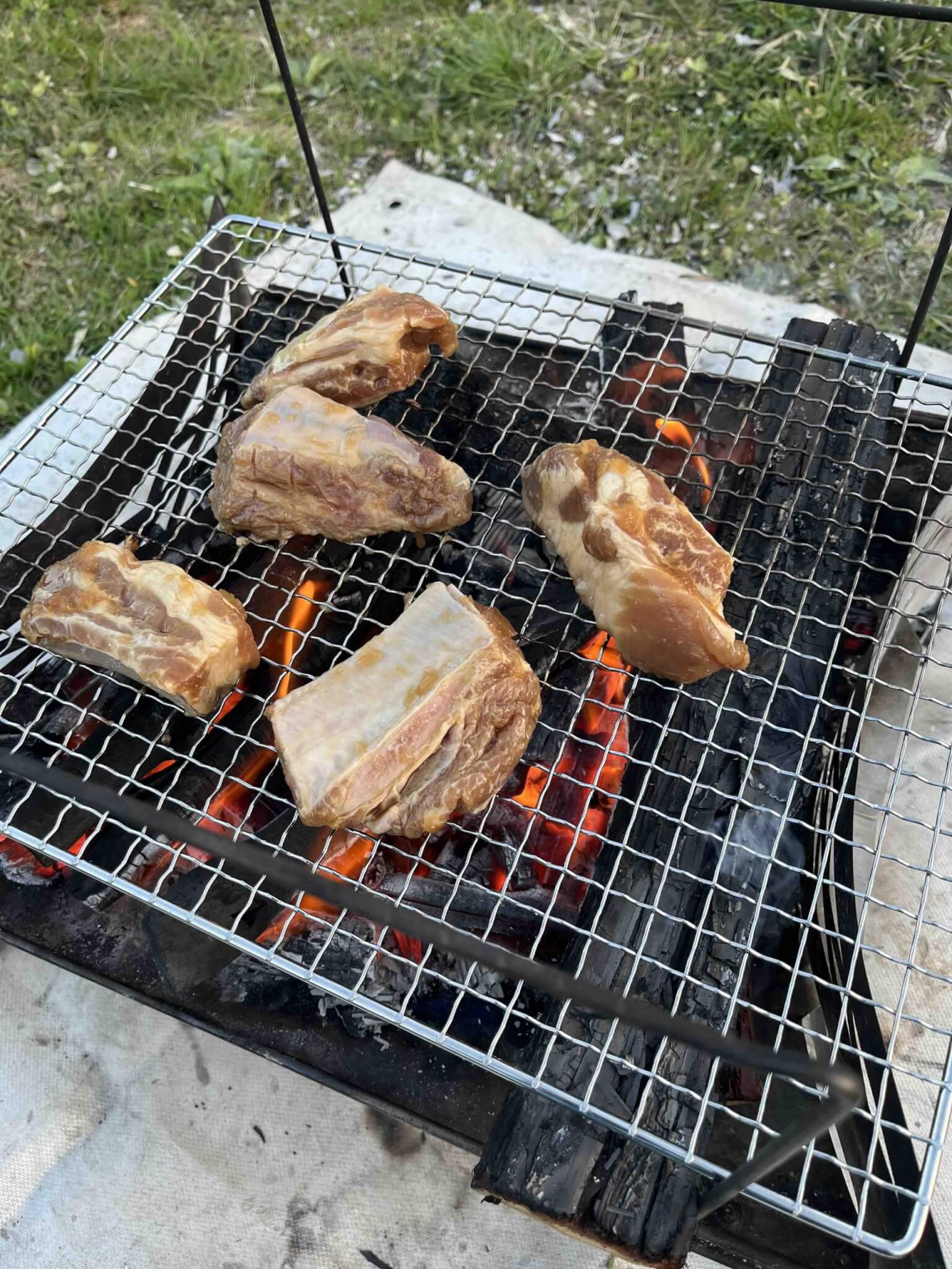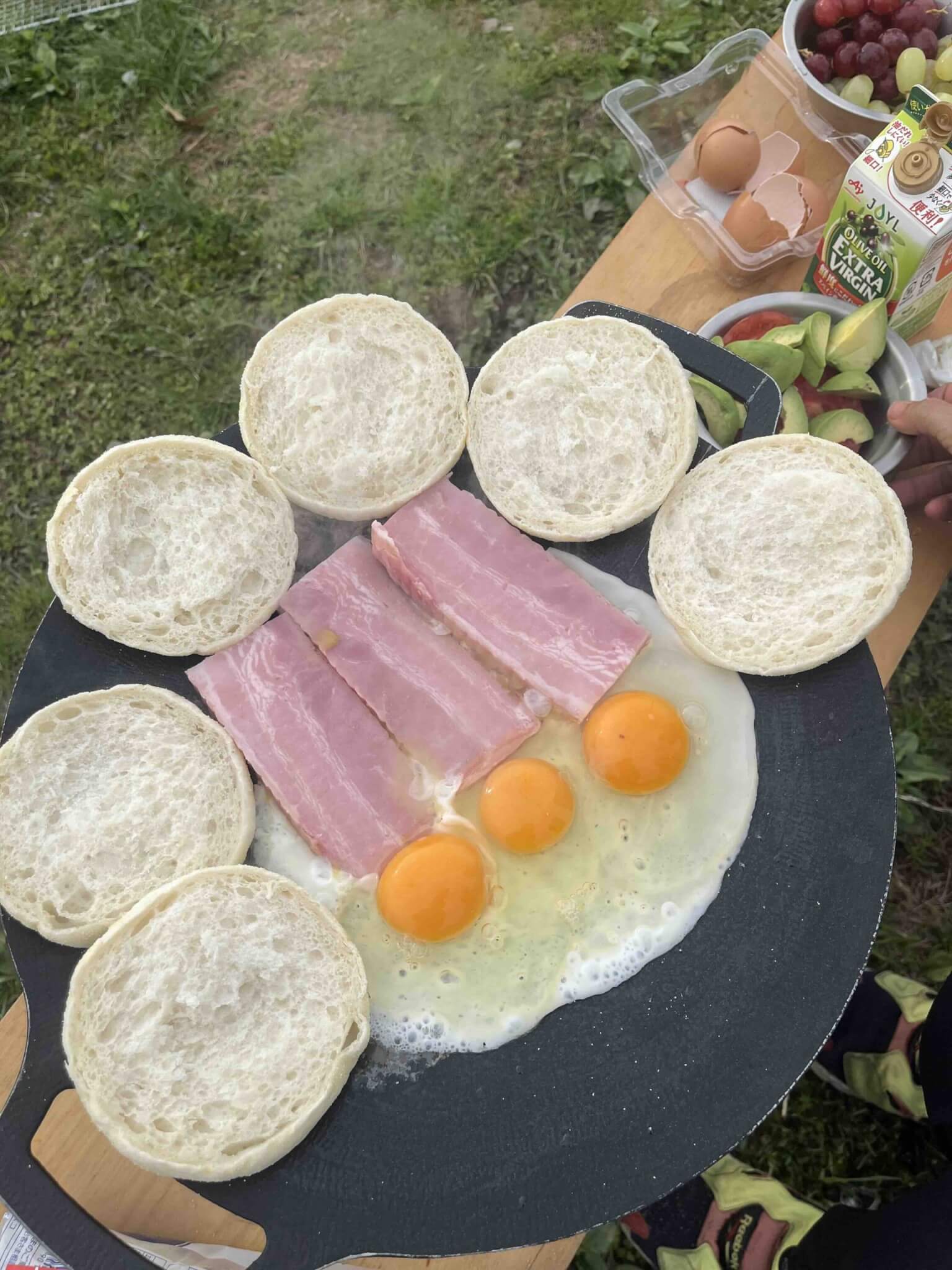キャンプ飯は仕込んでいったスペアリブ焼いたり、ベーコンエッグマフィン作ったり。