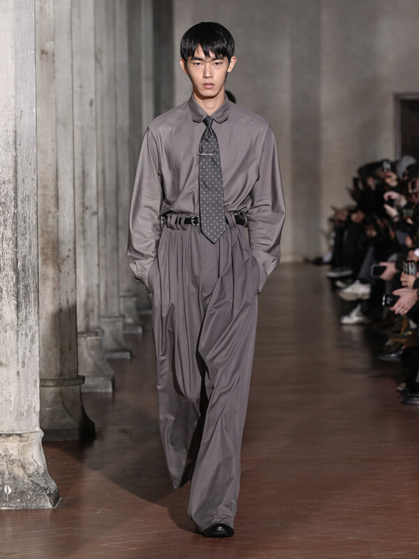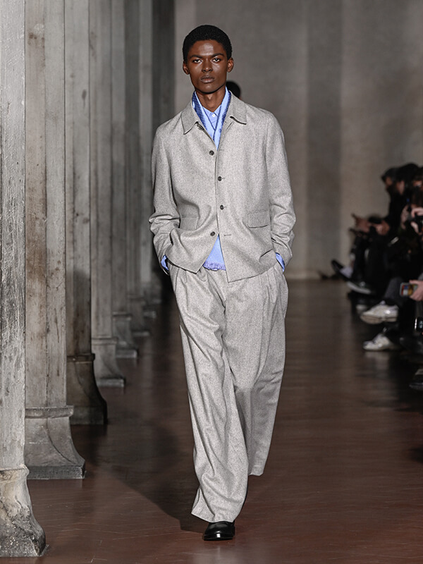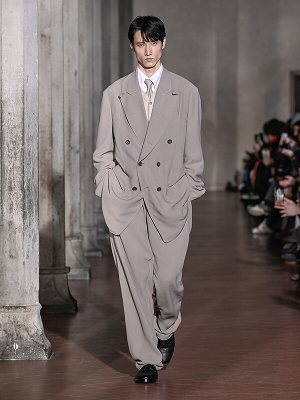 すでに何度も言及されてはいますが、アルマーニの影響下にあるだろうクリエイションが、極めてフレッシュでコンテンポラリーな解釈で披露されています。とにかくエレガント。