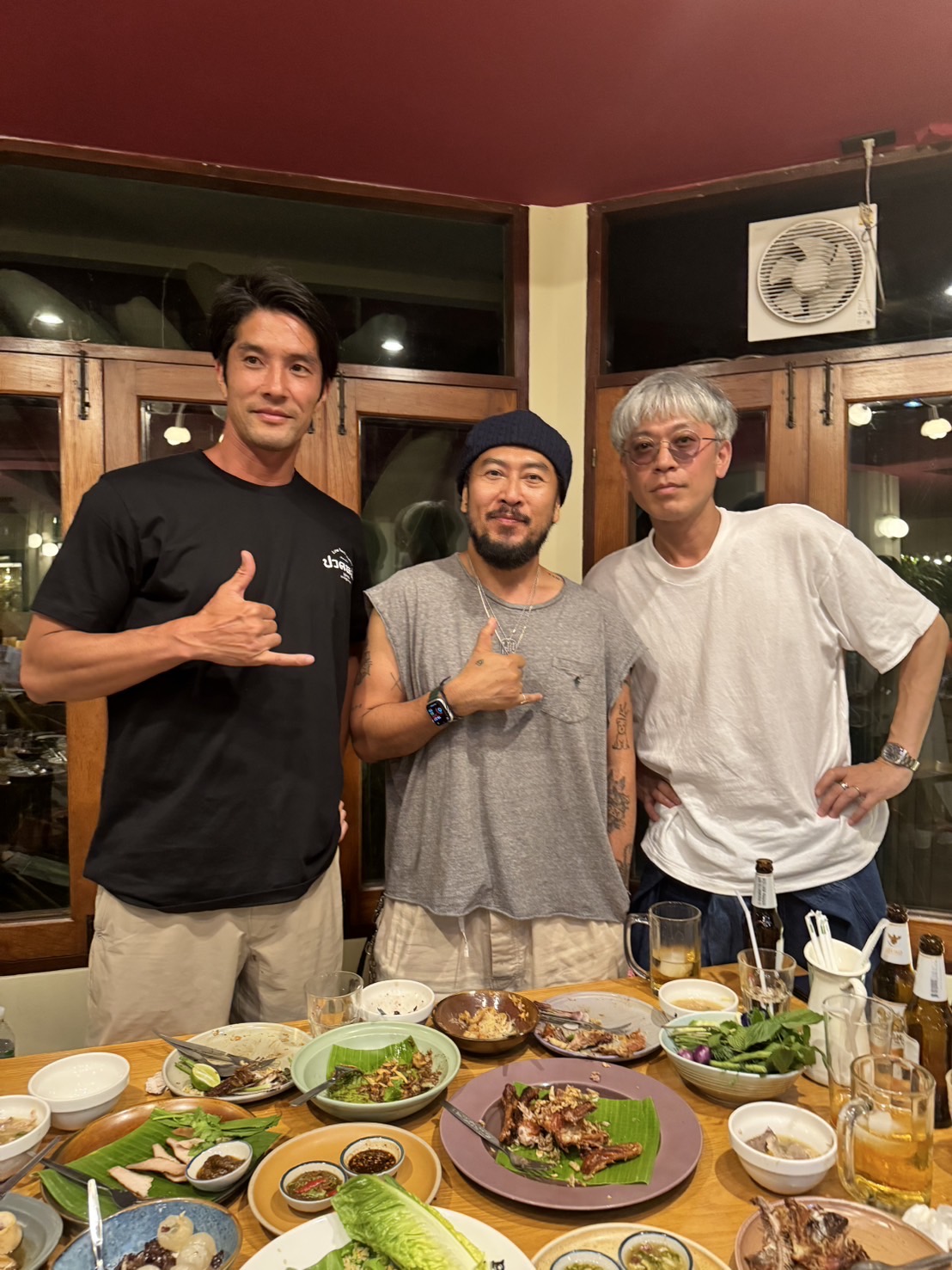 プーさんと、14年前にプーさんを紹介してくれた、現地のサーファーであり俳優の八代くんの記念写真撮影して