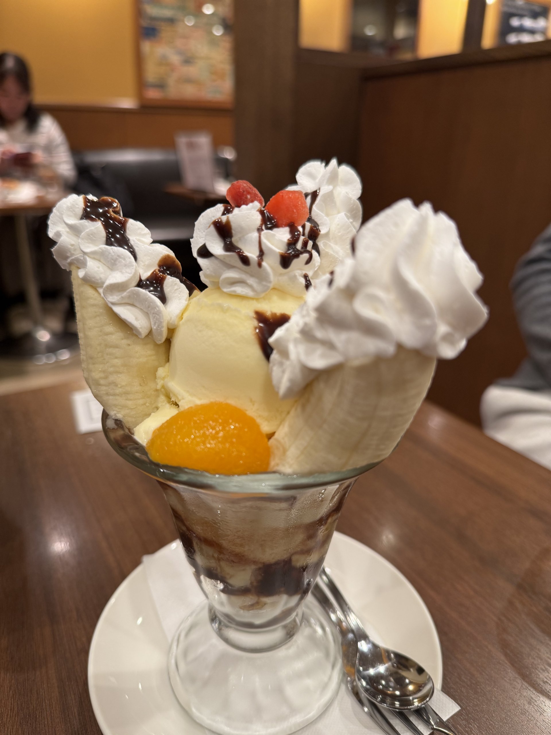 パパの時計旅に付き合ってくれた息子にパフェを注文し、カフェタイムを終えたら