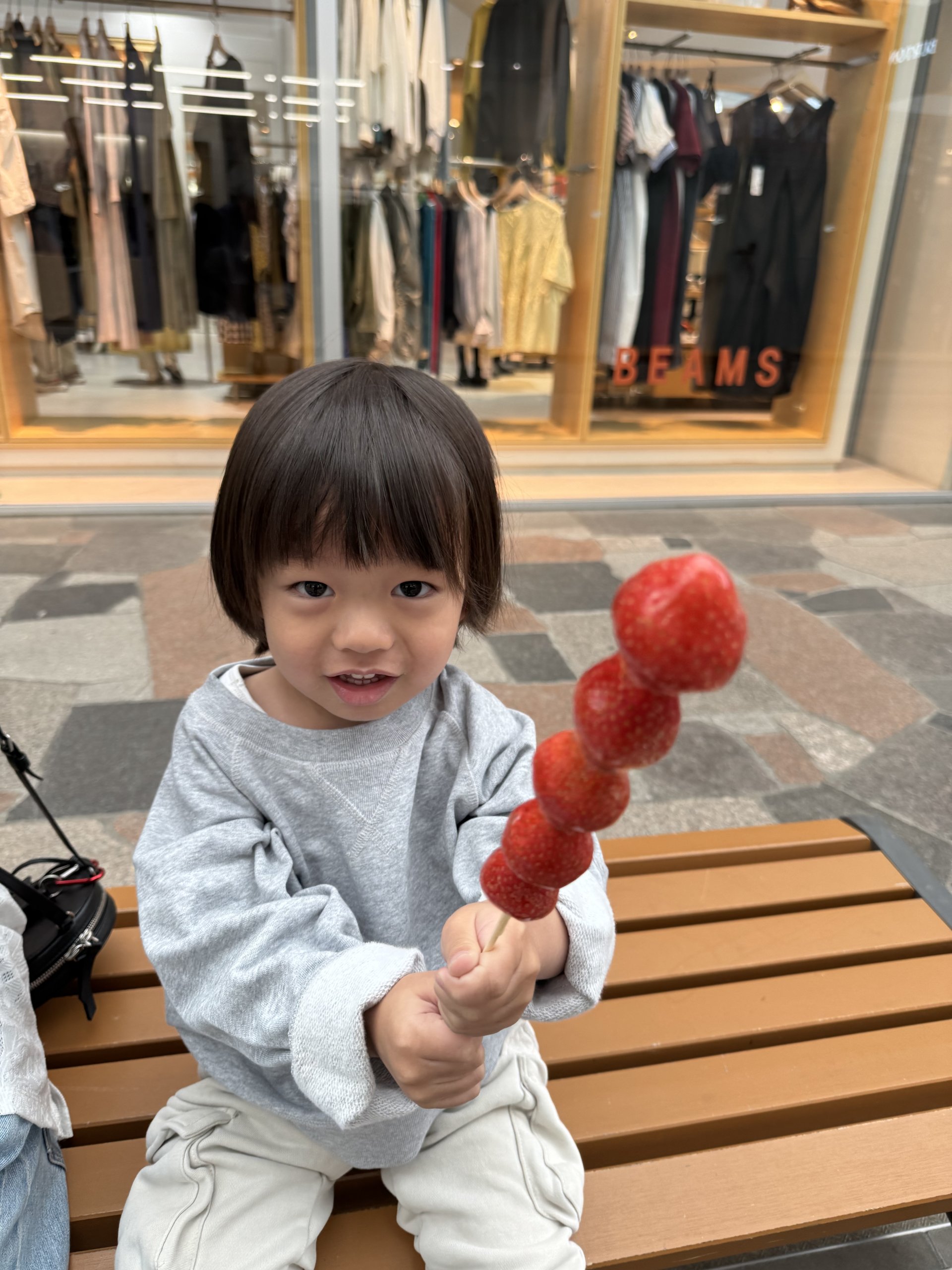 で、今もこの頃もイチゴが大好きな息子とイチゴ飴を食べたら