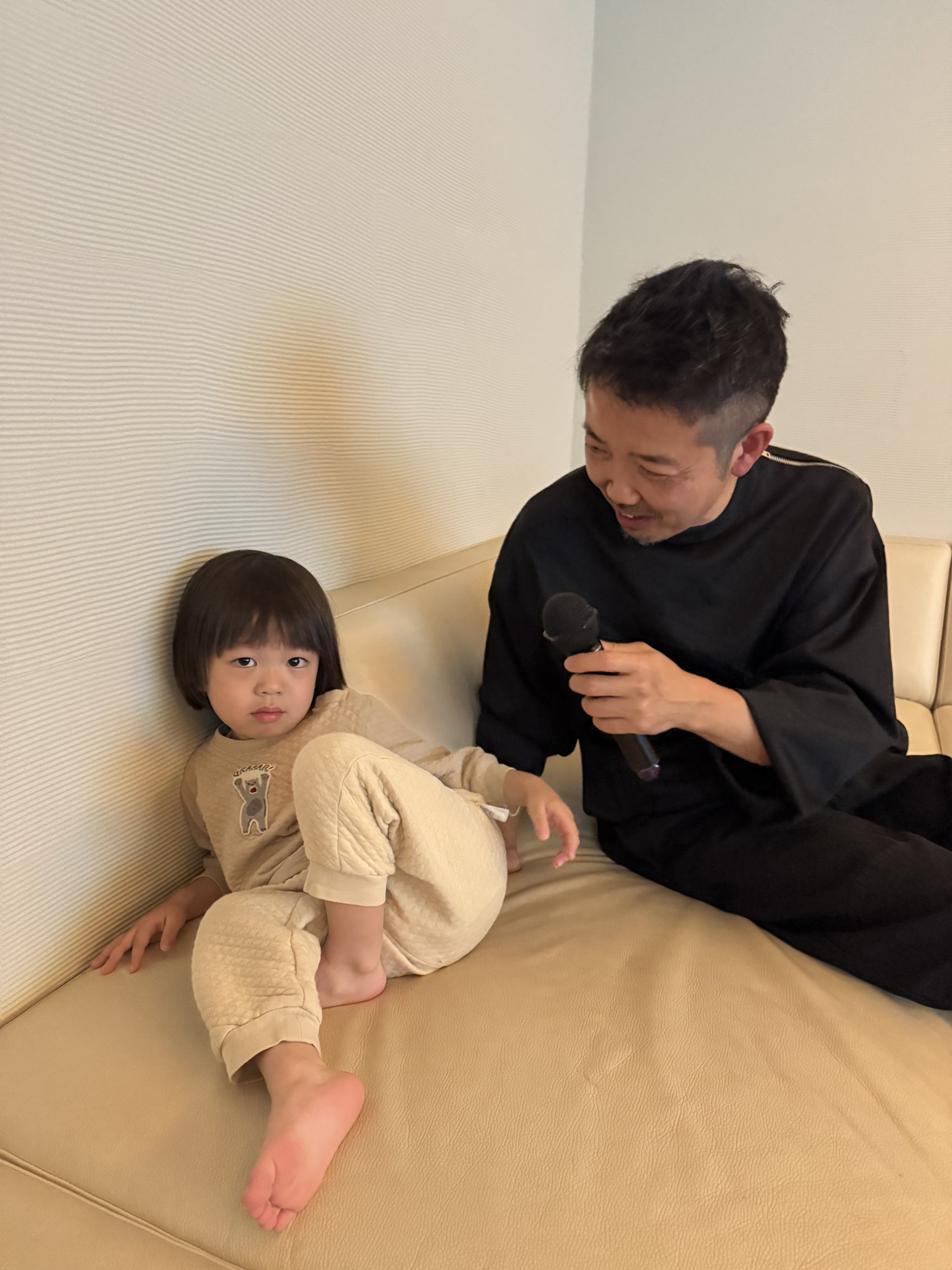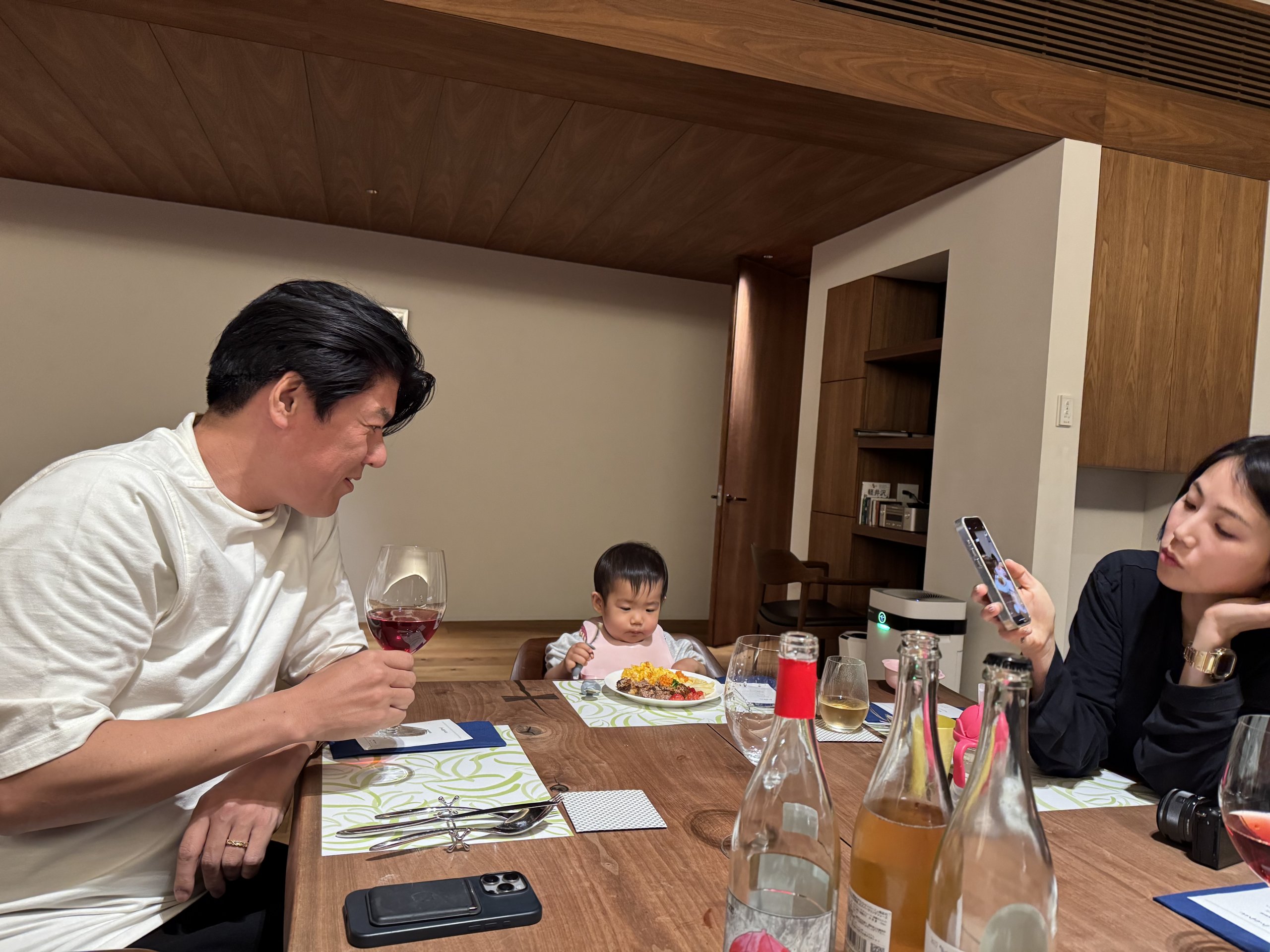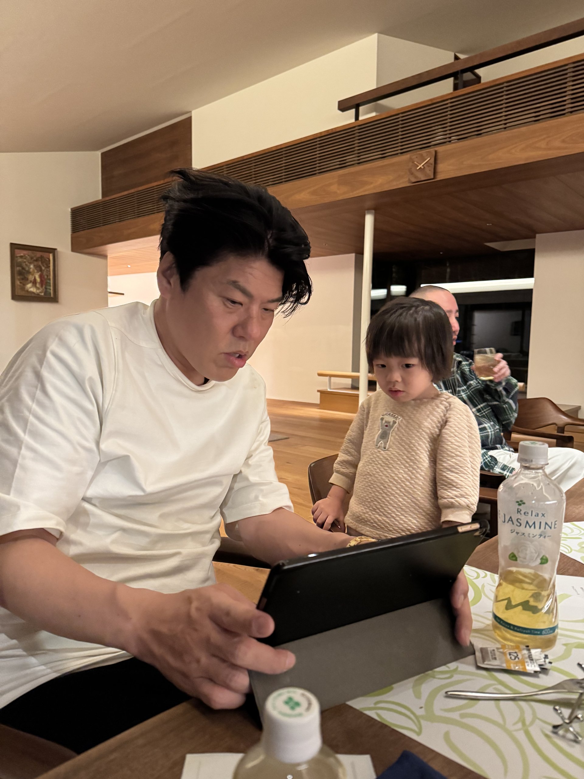 で、友達家族の子供は寝たのですが、僕の息子はいつも夜寝ないので