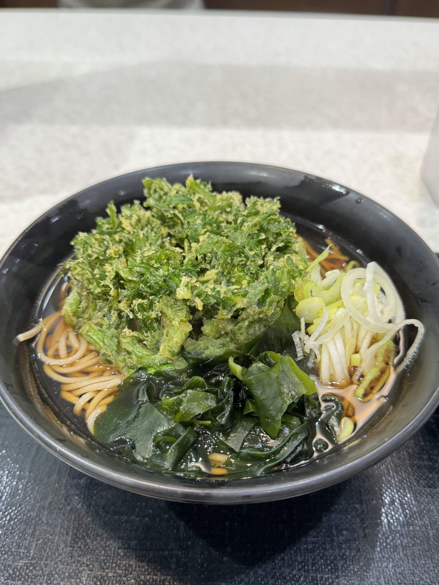 春菊天そばに温玉を乗せたのを食べることに笑。