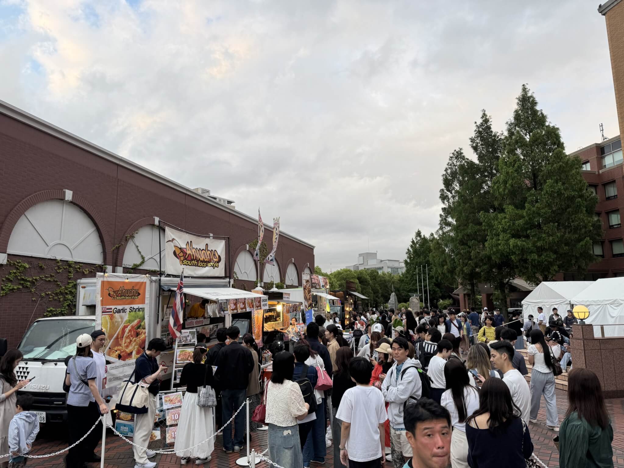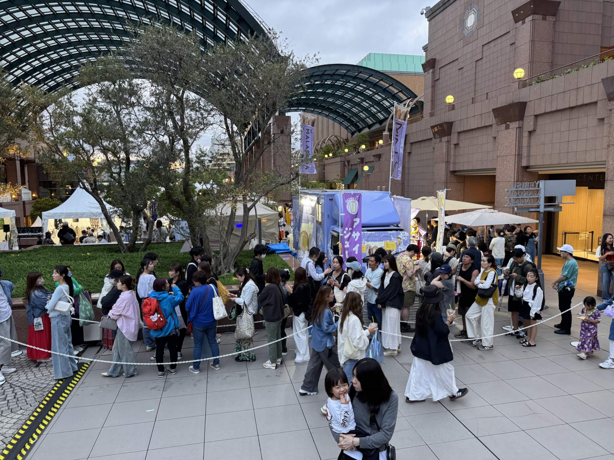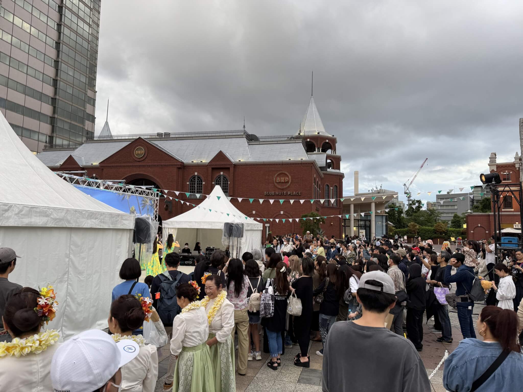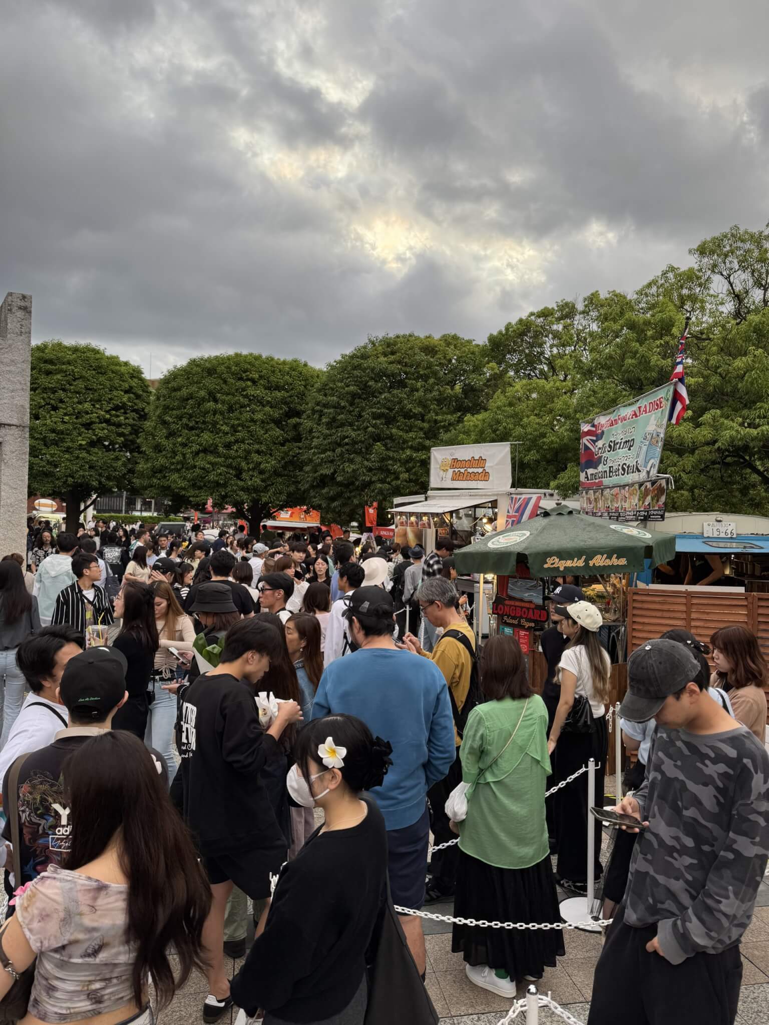 ハワイを体験しようとしますが、どのブースも人が多すぎて