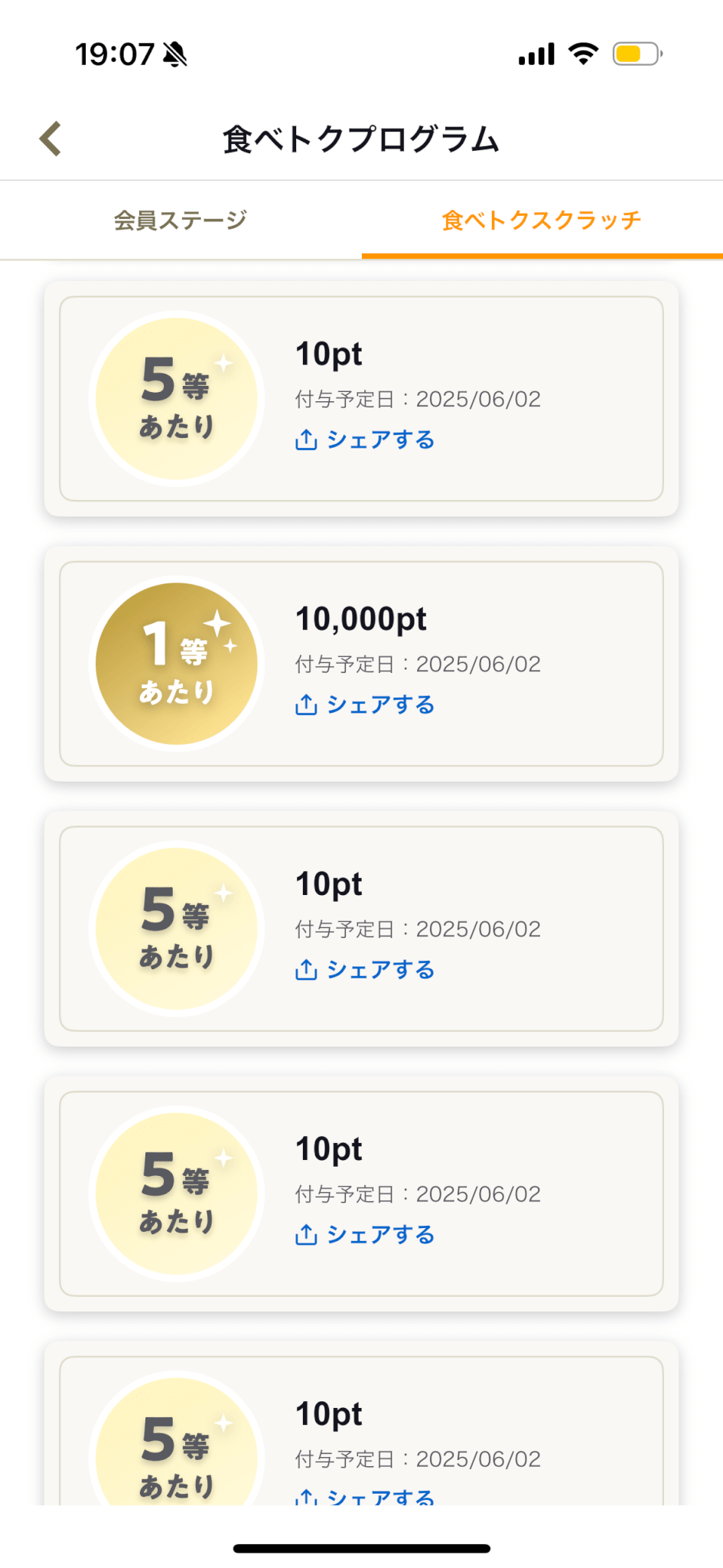 から、同アプリで予約してお店へ行くと数日後に配布されるスクラッチくじが届いていたので、なんとなくいつものようにタップすると
