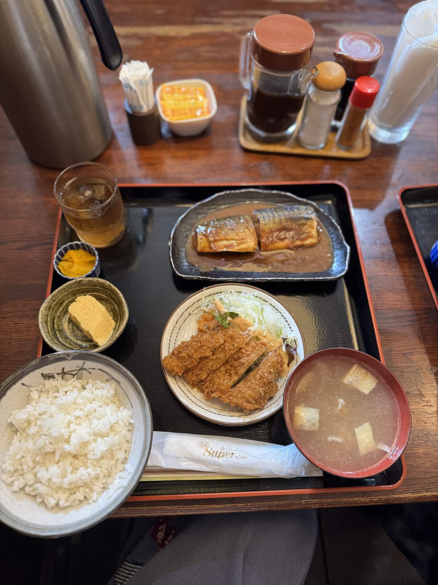 で、鯖の味噌煮ランチ頼んだら、トンカツも付いててびっくり!!!