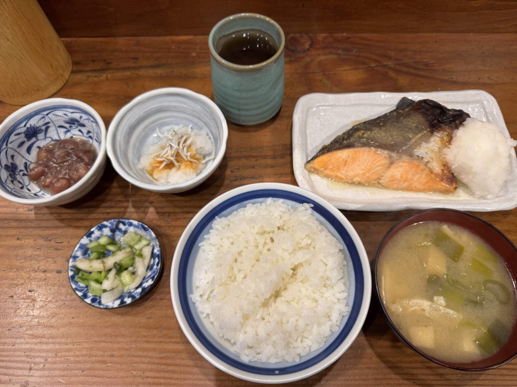 昼間は基本、家で質素ご飯ですが、やっぱりちゃんとお魚とか食べたら美味しいねぇ。