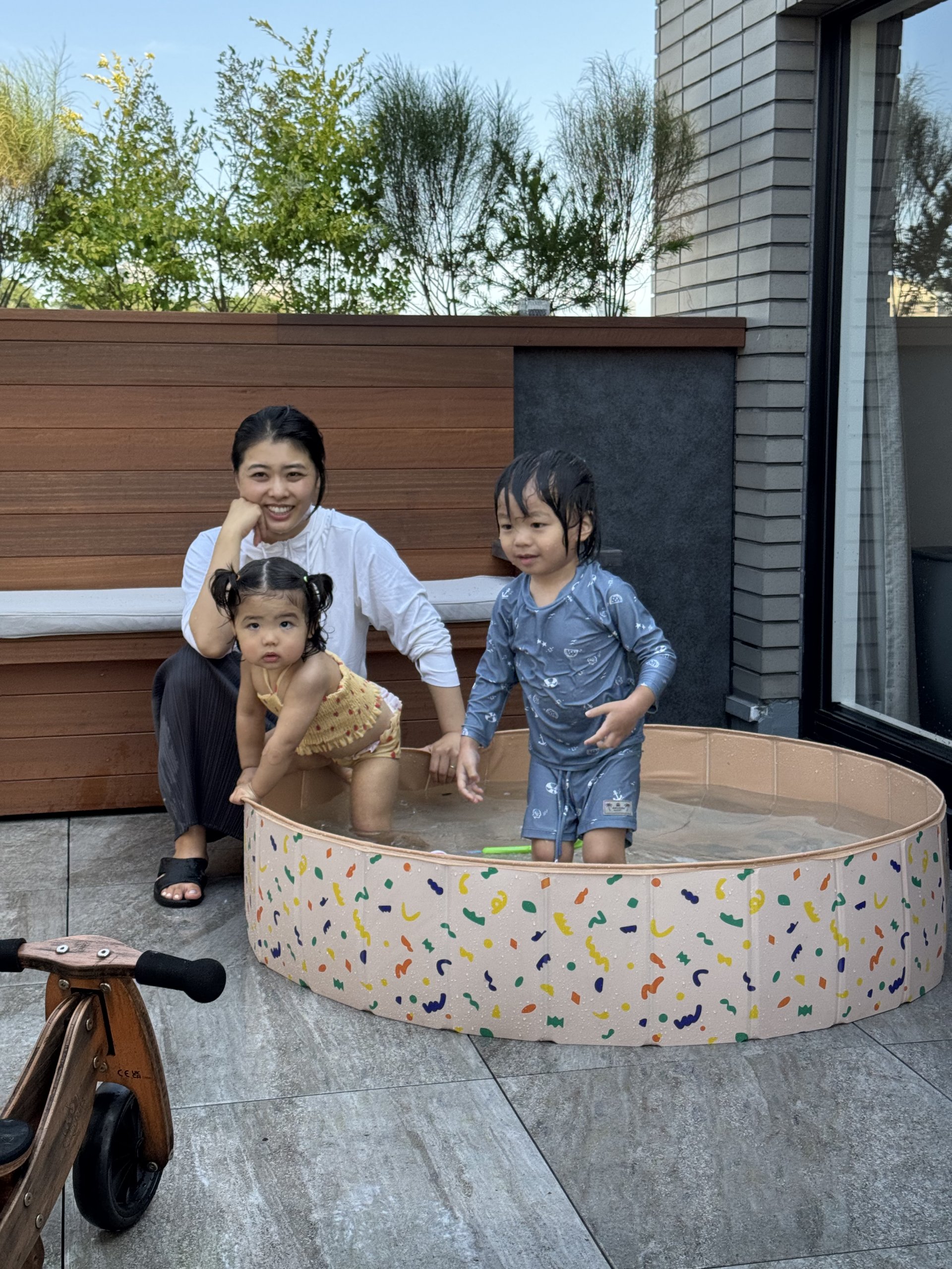 ご近所の友達、加島さんの家のベランダにプールがあるとのことで子供と一緒に行ってプール遊びをしこたま楽しんだら