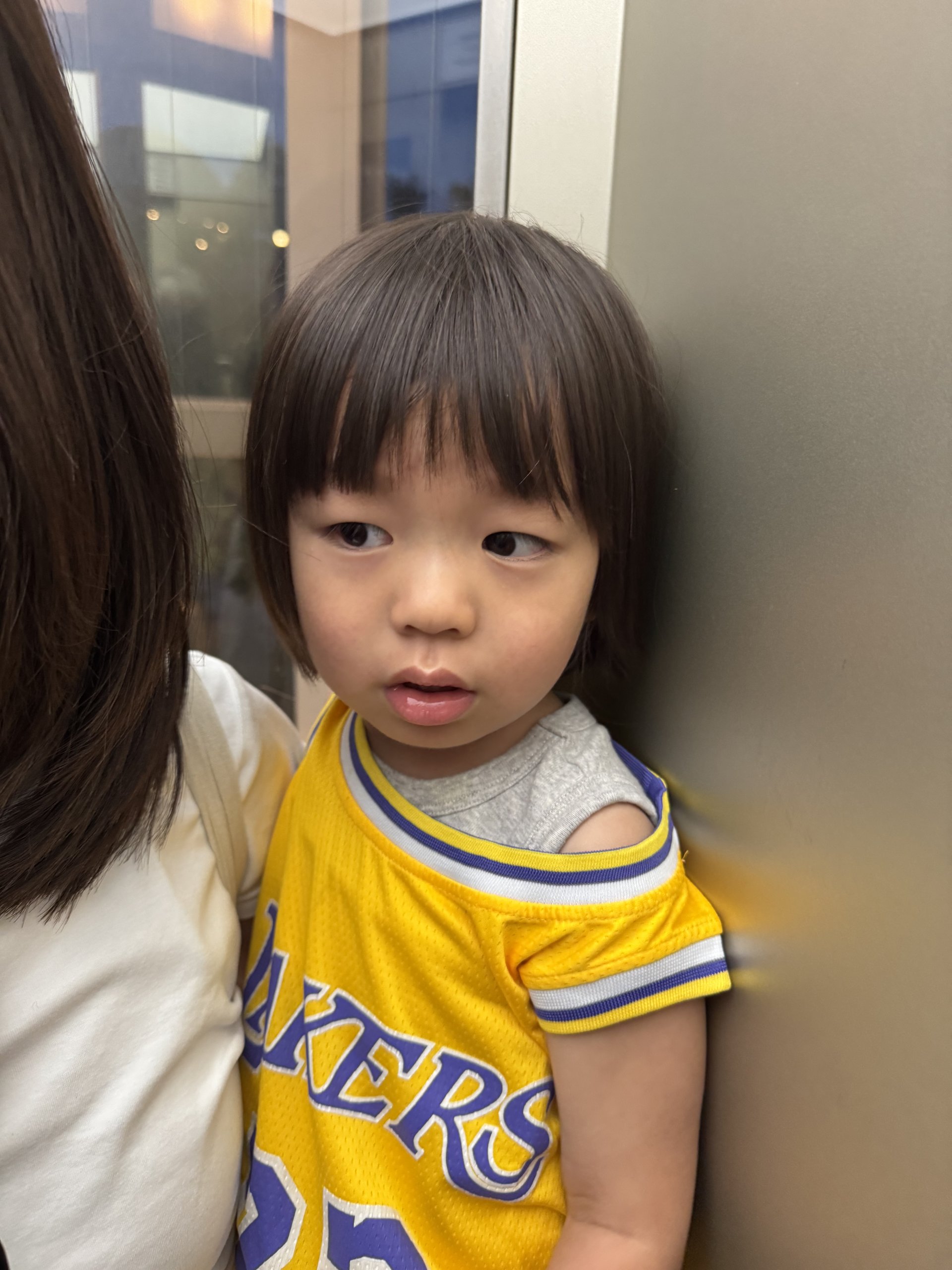 寒いのにずっとプールに入りすぎた子供を娑婆に連れ戻し