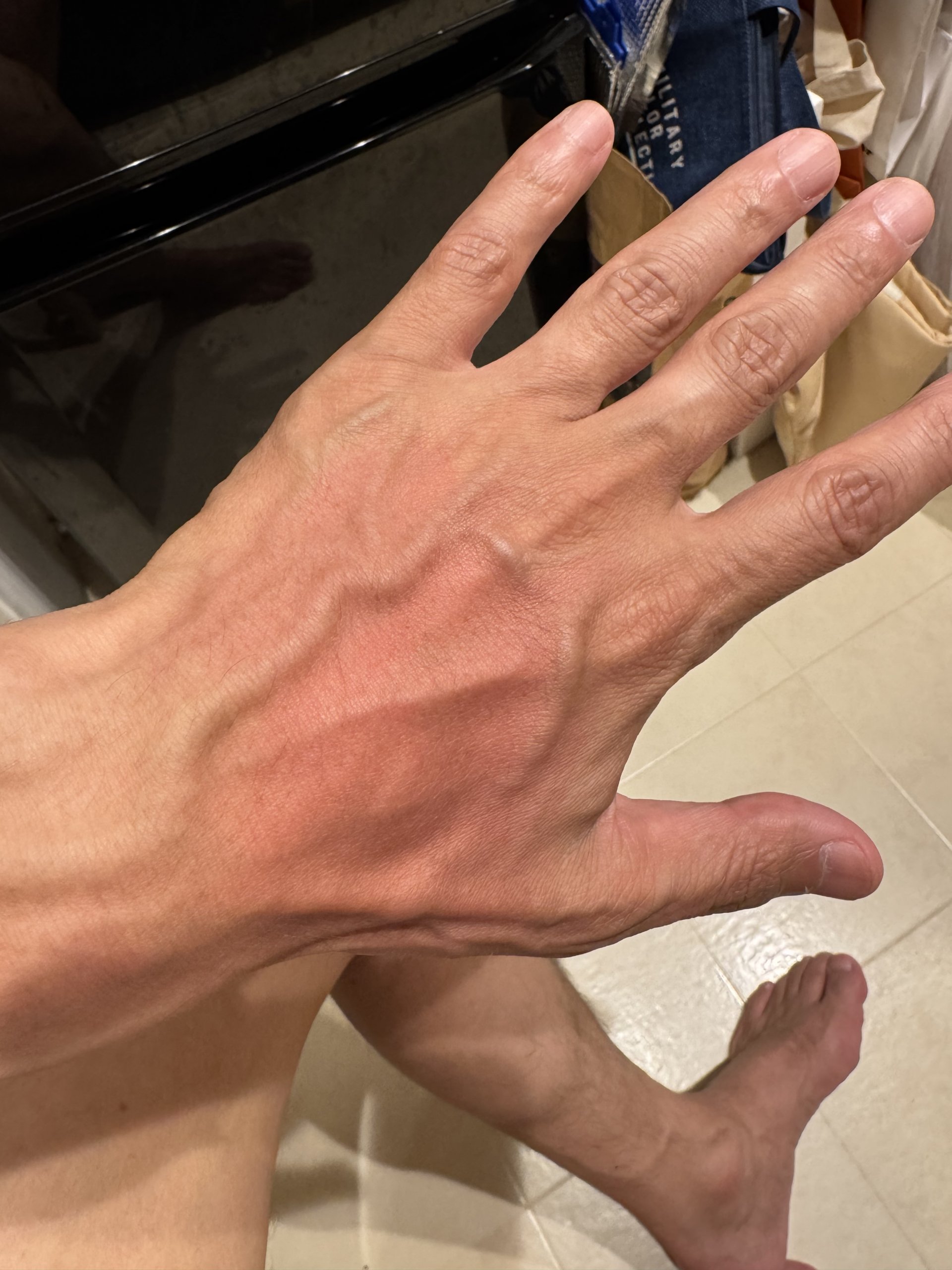 キッチンの換気扇下でタバコを吸いながらのんびりして、ふと手を見ると、めっちゃ日焼けしてます。