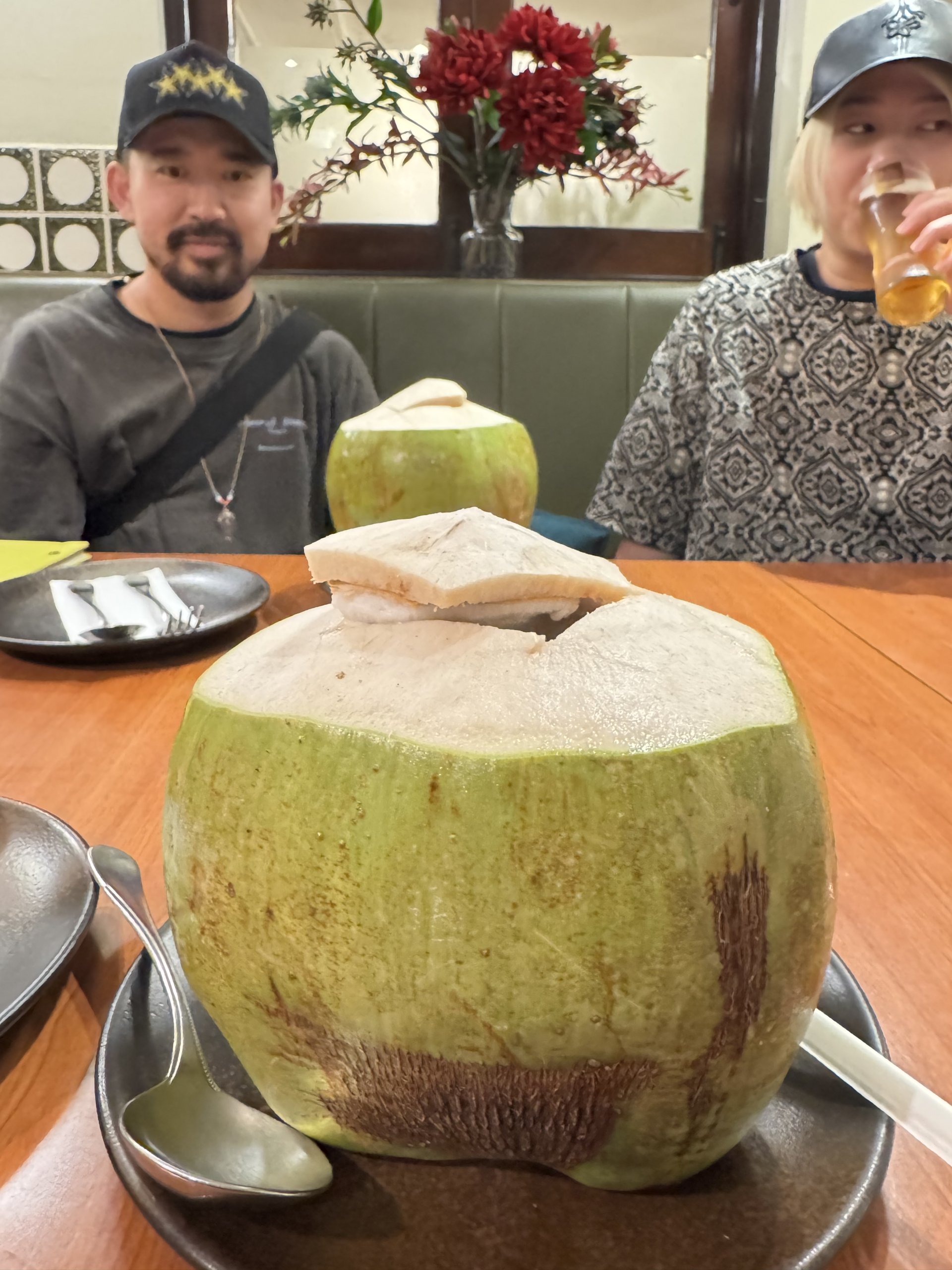さっきビールを飲んだのでさっぱりココナッツジュースで乾杯して