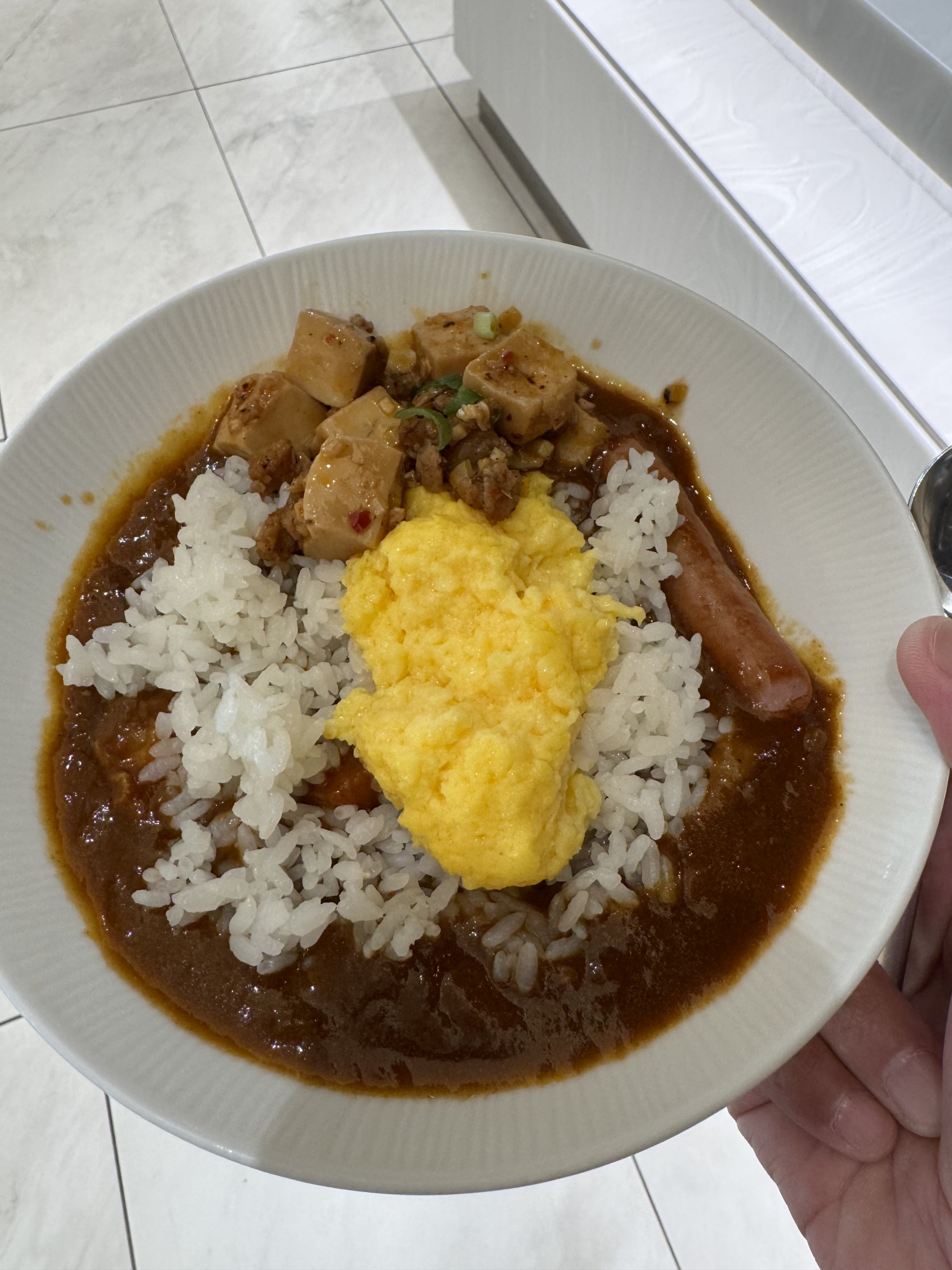 で、お約束のラウンジでANAカレーに、オリジナルでオムレツと麻婆豆腐とか乗せてアレンジを楽しんだら、飛行機に乗り込み到着。