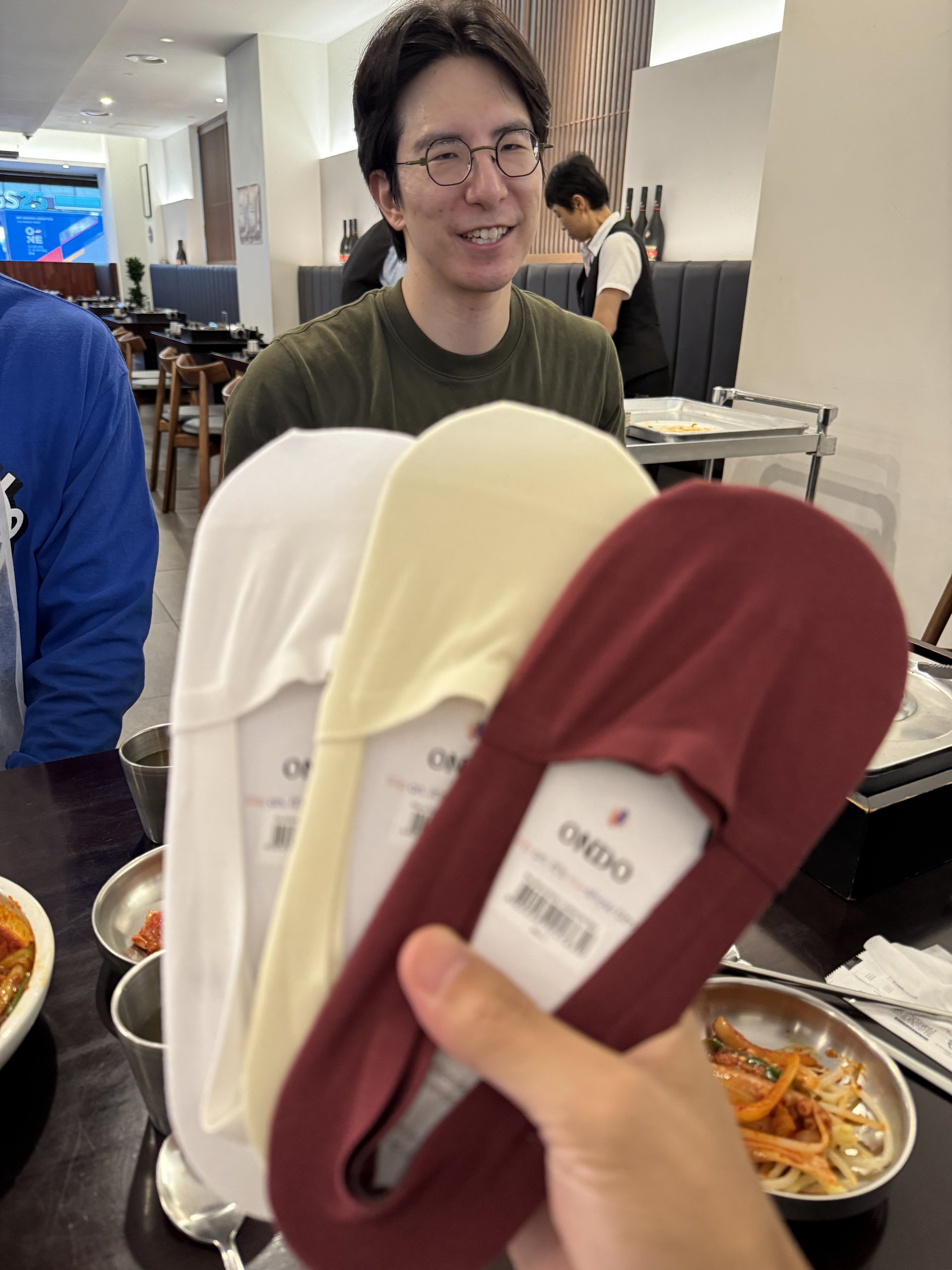 昔からお世話になっている今回韓国に来た理由の人に会うと、NYで靴下のブランドをやっている方を紹介してくれて靴下をもらいます。