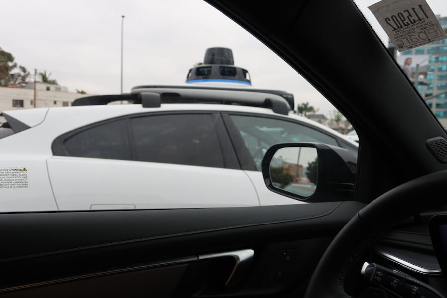 ロサンゼルスの街は広く、車社会なのでレンタカーで移動です。まわりを見ると時折、上や横に妙な装備を付けた車が走っています。無人運転の車です!