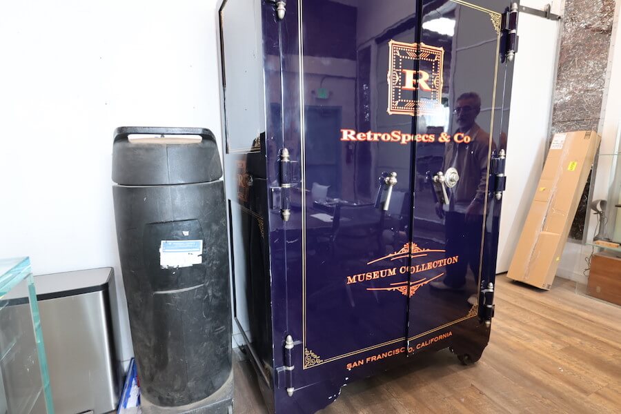 ロサンゼルスはコロナ禍になって以来、訪ねていませんでした。その後、ビンテージ・アンティークアイウェアのコレクションの状態がどのように変化しているか知りたくて、「RetroSpecs」の本拠地に行きました。代表のJayは30年以上の付き合いです。お互い、若い頃から関係が始まり、「グローブスペックス」の創業時にはJayとSelimaが「軌道に乗るまで商品の支払いはしなくて良いよ」と言ってくれたので、「グローブスペックス」は初めの大変な時期を乗り越えられたんです。Jayも「グローブスペックス」にとって恩人なのです。