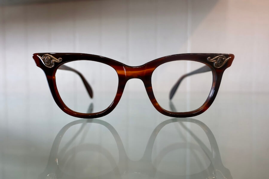 今回は1950年代から60年代に作られた、やや太みで存在感のあるZyl、及び、ブロウタイプのコンビネーションフレームを中心にセレクトしました。智元に装飾的な飾り鋲が着いているフレームもビンテージ特有のオーラにあふれています。