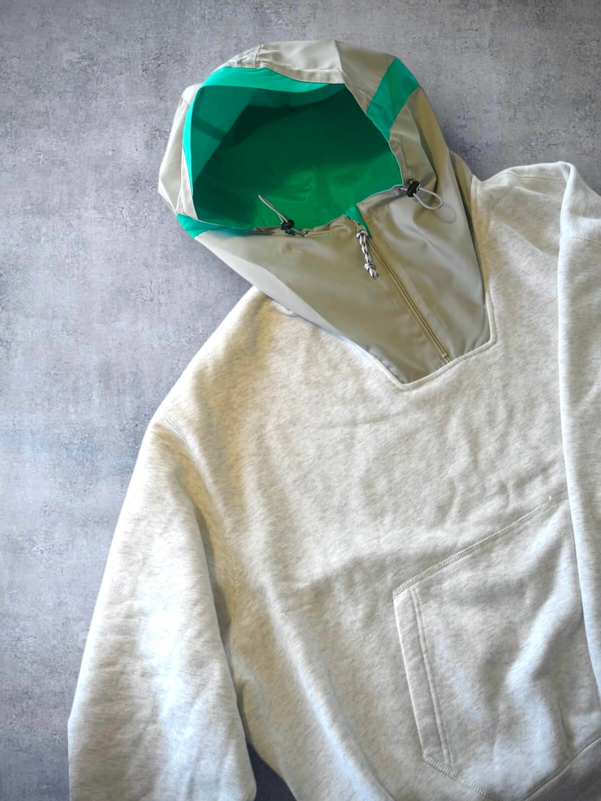 ちなみにこれスウェットパーカーとは言えどもアノラック的な解釈の影響か相当身幅が広いアイテム。一枚でもいいけれど、ちょっとオーバーなコートのインナーにも丁度いいですね。